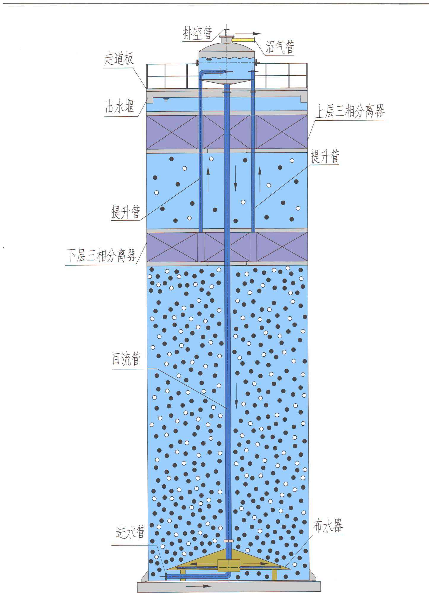 USAB反应器的主体部分主要分为两个区域,即反应区和三相分离区。其中反应区为USAB反应器的工作主体。